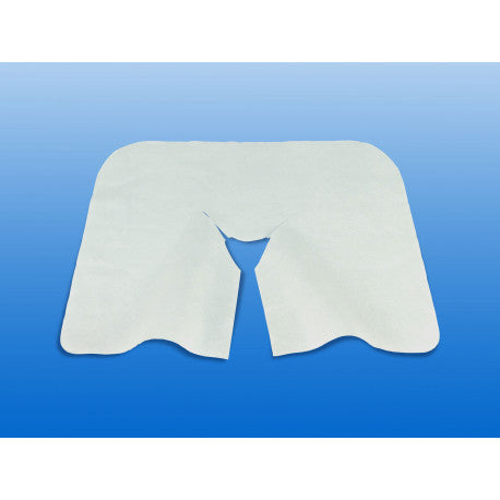 Gesichtsunterlage aus Airlaid Cellulose mit Y-Schlitz für Behandlungsliegen in der Physiotherapie. Sie wird eingesetzt, um einer Keimverschleppung entgegenzuwirken und die Liege vor Schweiß- und Kosmetikrückständen zu schützen. Maße: 30 x 40 cm.