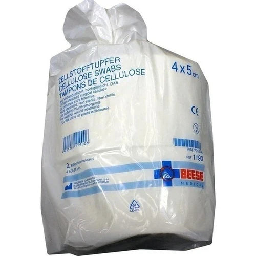 Unsterile Zellstofftupfer aus hochgebleichtem Zellstoff gemäß DAB. Zur äußeren Wundversorgung. Größe: 4 x 5 cm; 500 Stück pro Rolle.